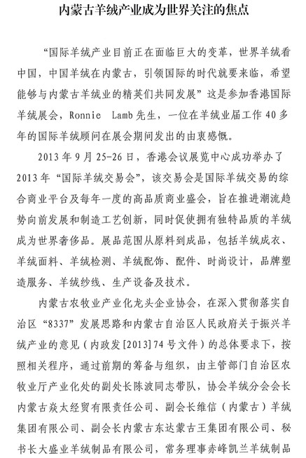 標(biāo)題:內(nèi)蒙古羊絨產(chǎn)業(yè)成為世界關(guān)注的焦點(diǎn)