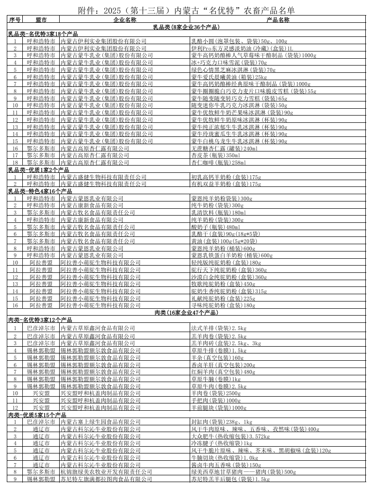 2025第十三屆內蒙古“名優(yōu)特”農畜產(chǎn)品名單公告
