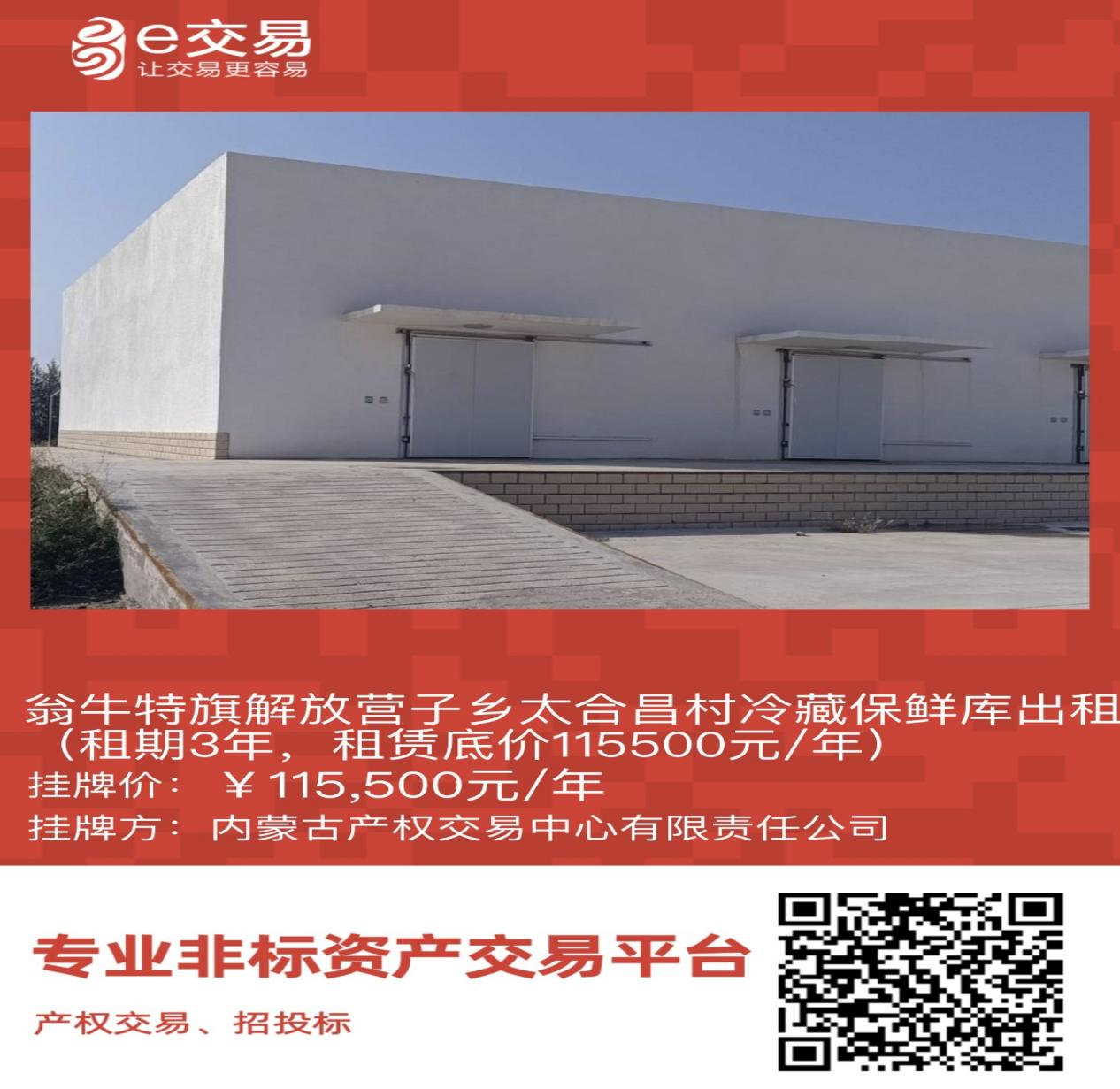 翁牛特旗解放營(yíng)子鄉(xiāng)太合昌村冷藏保鮮庫(kù)出租(租期3年,租賃底價(jià)115500元/年)