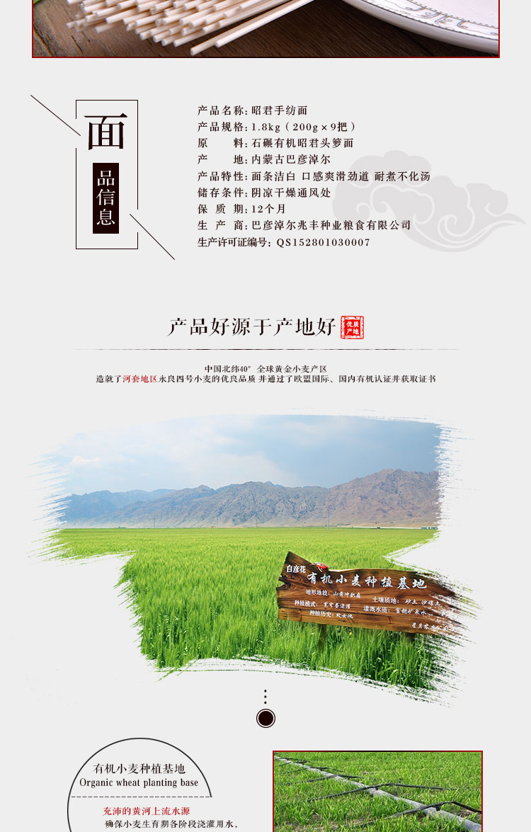產(chǎn)品名稱:雞鹿塞 昭君手紡面 精品禮盒 1.8kg 手工細(xì)面 禮盒