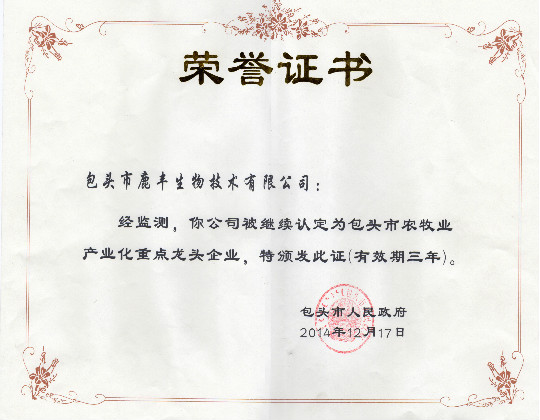 公司簡介 鹿豐生物技術有限公司坐落在美麗的內蒙古大草原稀土之都—包頭,內蒙古包頭一顆生長在大草原上的璀璨明珠,這里天空純凈明亮、草地遼闊壯麗、空氣清新、綠草如茵、牛羊成群。這片得天獨厚的天然草原成就了內蒙古畜牧業(yè)的蓬勃發(fā)展。 鹿豐生物技術有限公司于2010年5月注冊成立,注冊資本500萬元。位于包頭市昆都侖區(qū)團結大街212號,占地面積20畝...