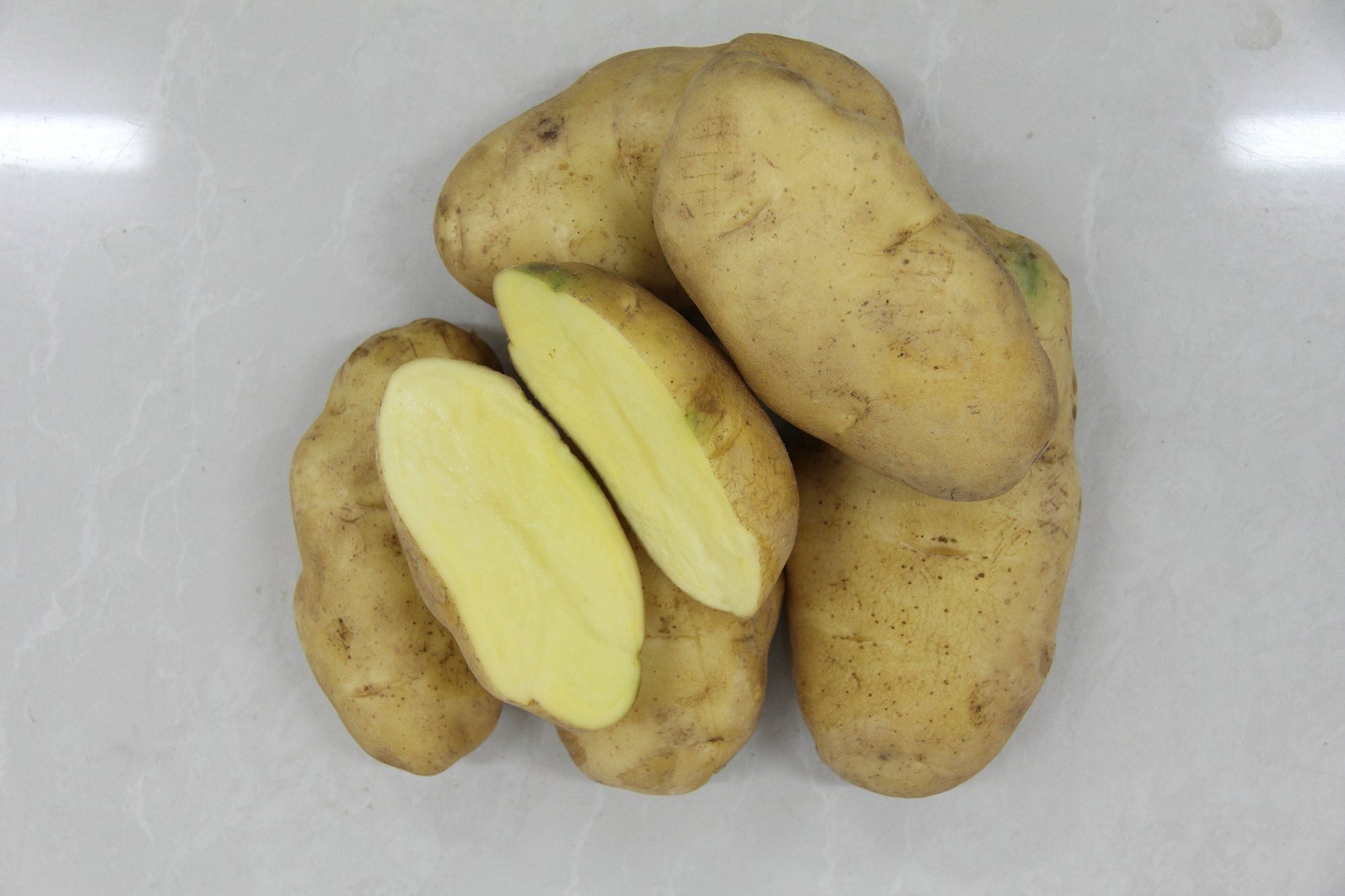 大西洋(Atlantic) 植株繁茂,葉片肥大,花淡紫色,生育期100天左右。株高70厘米左右。塊莖圓形,中薯比例大而整齊,薯皮淡黃色,有麻...