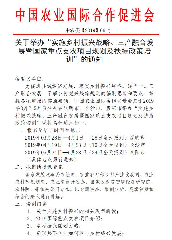 關(guān)于舉辦“實(shí)施鄉(xiāng)村振興戰(zhàn)略、三產(chǎn)融合發(fā)展暨國家重點(diǎn)支農(nóng)項目規(guī)劃及扶持政策培訓(xùn)”的通知