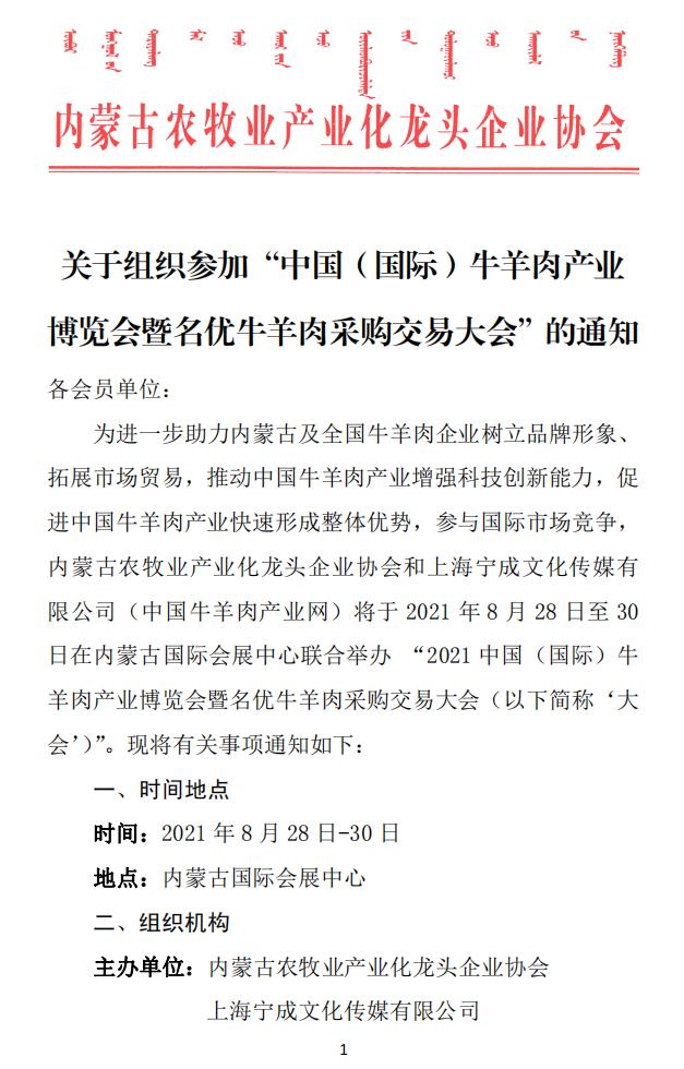關于組織參加“中國(國際)牛羊肉產(chǎn)業(yè)博覽會暨名優(yōu)牛羊肉采購交易大會”的通知