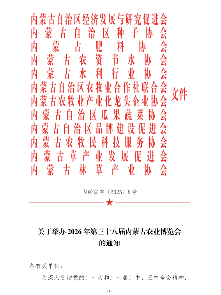 關(guān)于舉辦2026年第三十八屆內(nèi)蒙古農(nóng)業(yè)博覽會(huì)的通知