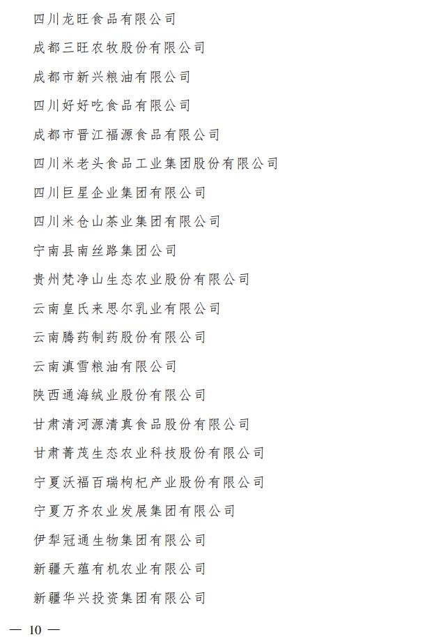 標題:農(nóng)業(yè)農(nóng)村部 國家發(fā)展改革委 財政部 商務(wù)部 中國人民銀行 國家稅務(wù)總局 中國證券監(jiān)督管理委員會 中華全國供銷合作總社關(guān)于遞補148家企業(yè)為農(nóng)業(yè)產(chǎn)業(yè)化國家重點龍頭企業(yè)的通知