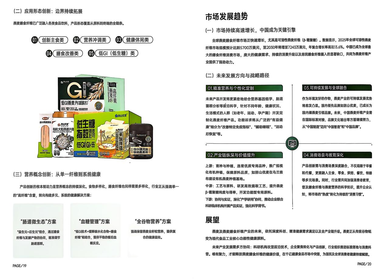 業(yè)界專家認為,《中國燕麥膳食纖維白皮書》的發(fā)布,得益于陰山優(yōu)麥將多年積累的產(chǎn)業(yè)實踐轉(zhuǎn)化為科學(xué)標準與公共知識,白皮書不僅能提升消費者對燕麥營養(yǎng)價值的認知,促進合理消費,也將推動我國營養(yǎng)健康食品產(chǎn)業(yè)的高質(zhì)量發(fā)展。陰山優(yōu)麥也表示,未來將繼續(xù)秉持“幸福農(nóng)民 健康中國”的企業(yè)使命,引領(lǐng)燕麥產(chǎn)業(yè)高質(zhì)量創(chuàng)新發(fā)展。
